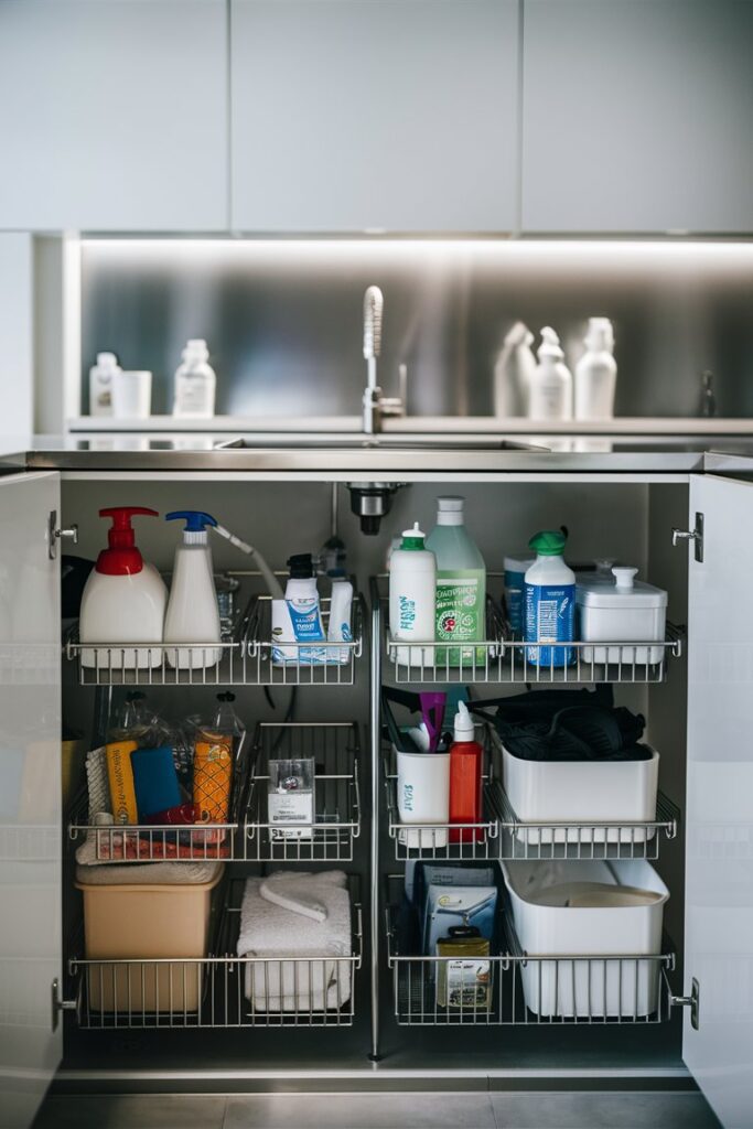 Under-sink storage is perfect for keeping cleaning supplies and other small items organized. Use pull-out drawers or shelves to make the most of this often-overlooked space.