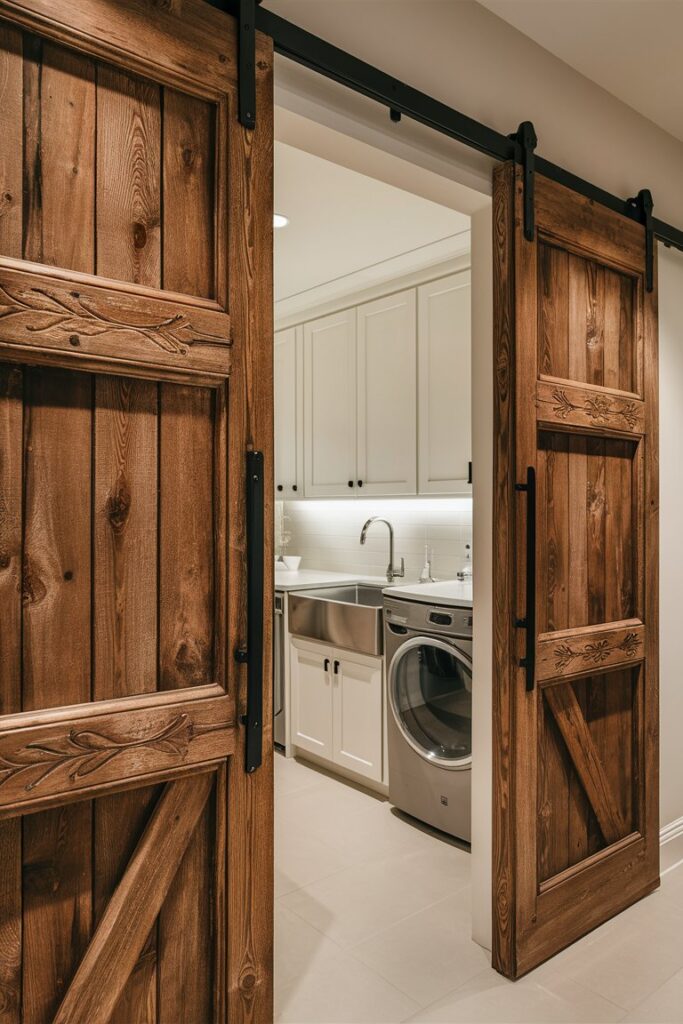 Maximize your space and add a rustic touch with sliding barn doors. These beauties slide along a track, saving precious space that traditional doors would take. Perfect for a small but stylish laundry room.