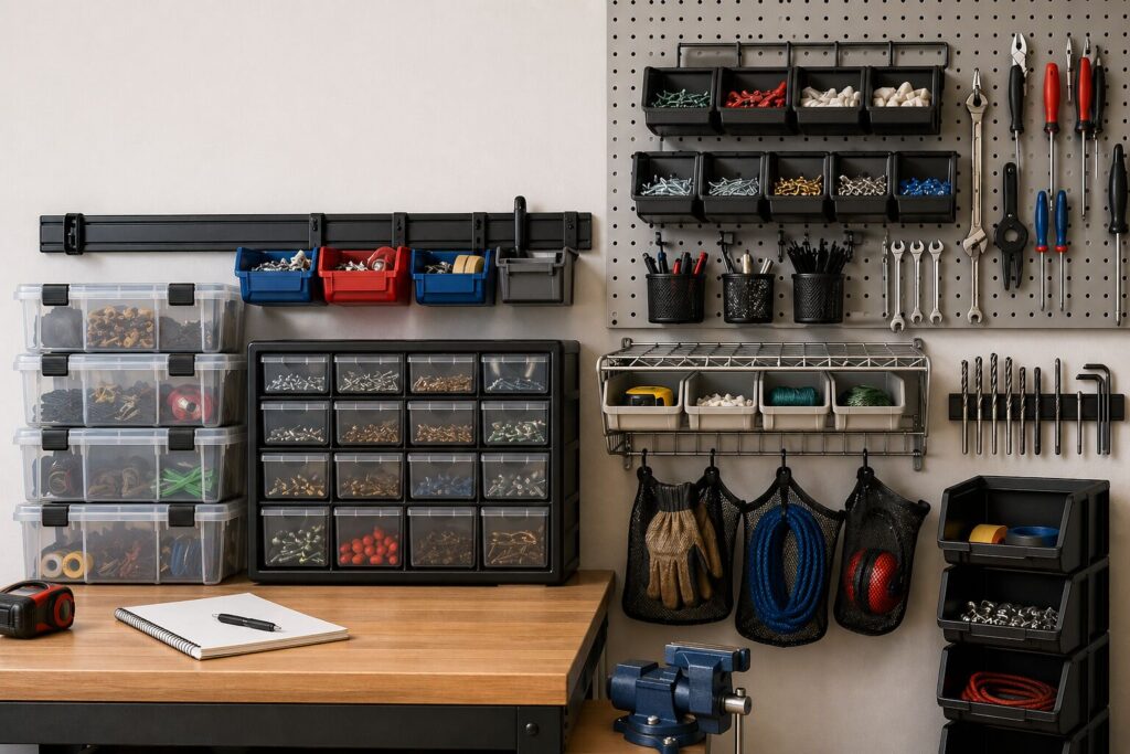 This guide covers wall-mounted bins, stackable containers, rail systems, and drawer-based organizers — all practical options for small item storage in a garage.