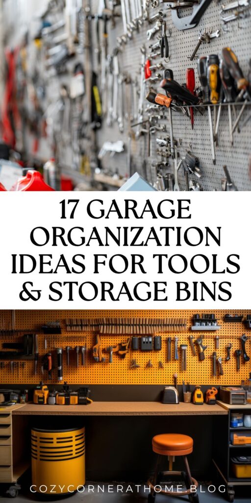 Pegboard is one of the most common garage organization ideas for hand tools. It allows flexible hook placement without permanent tool positions.
